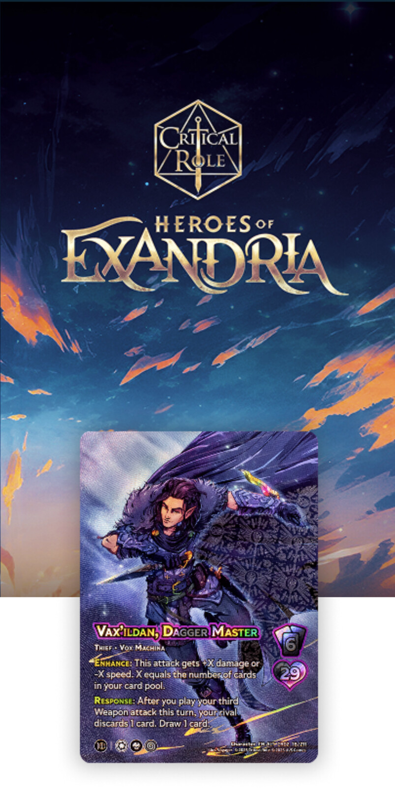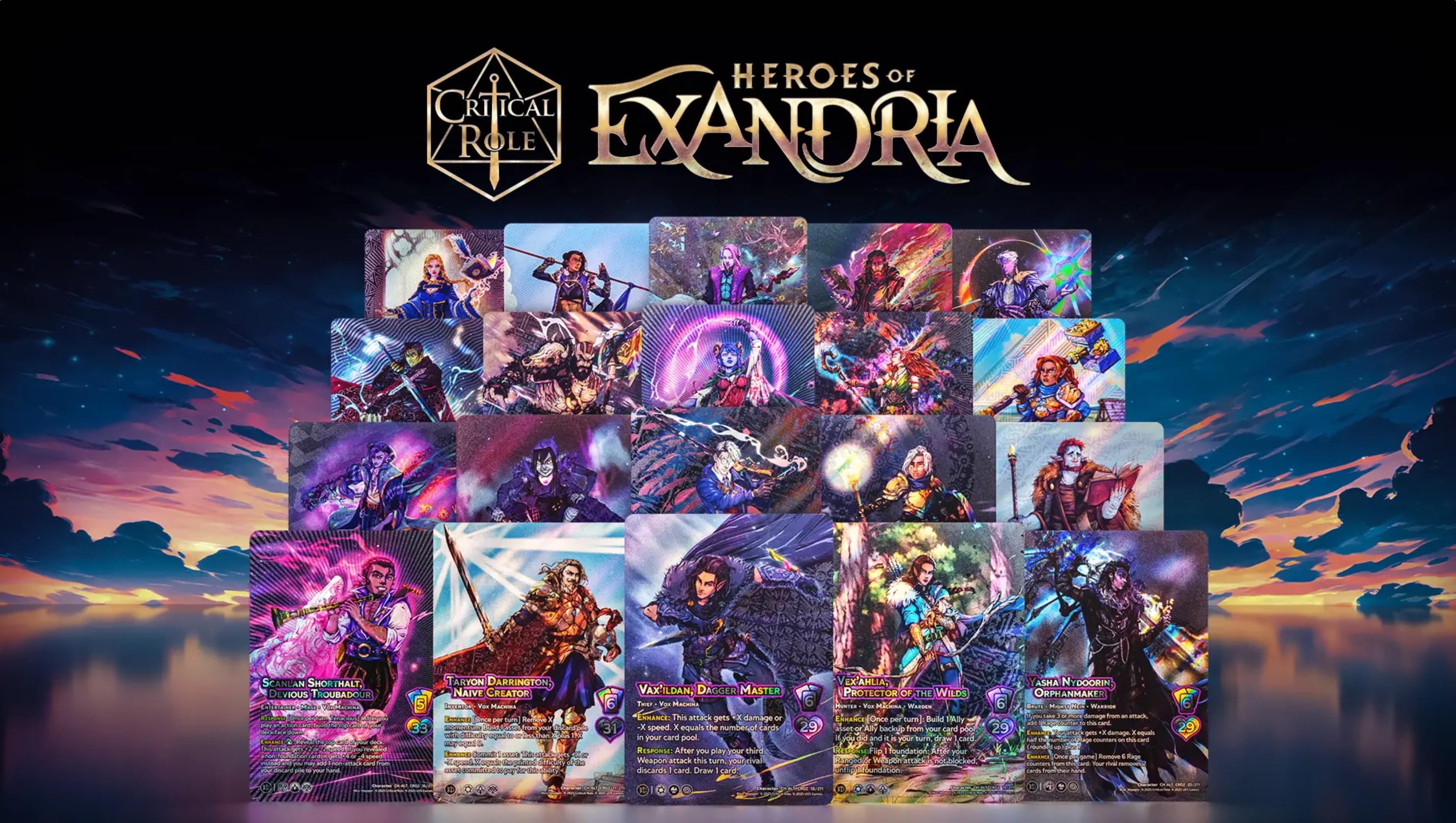 Exandria opens its doors! Heroes of Exandria booster set Illustrations. This set features 20 fan-favorite characters, Illustrated in my style for UniVersus release. Each 11-card booster pack includes one Character card, a selection of Attacks and Foundations.