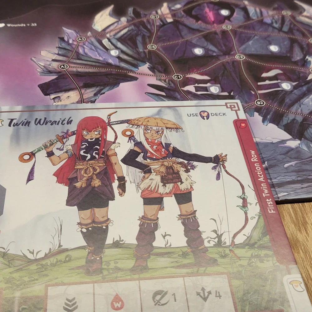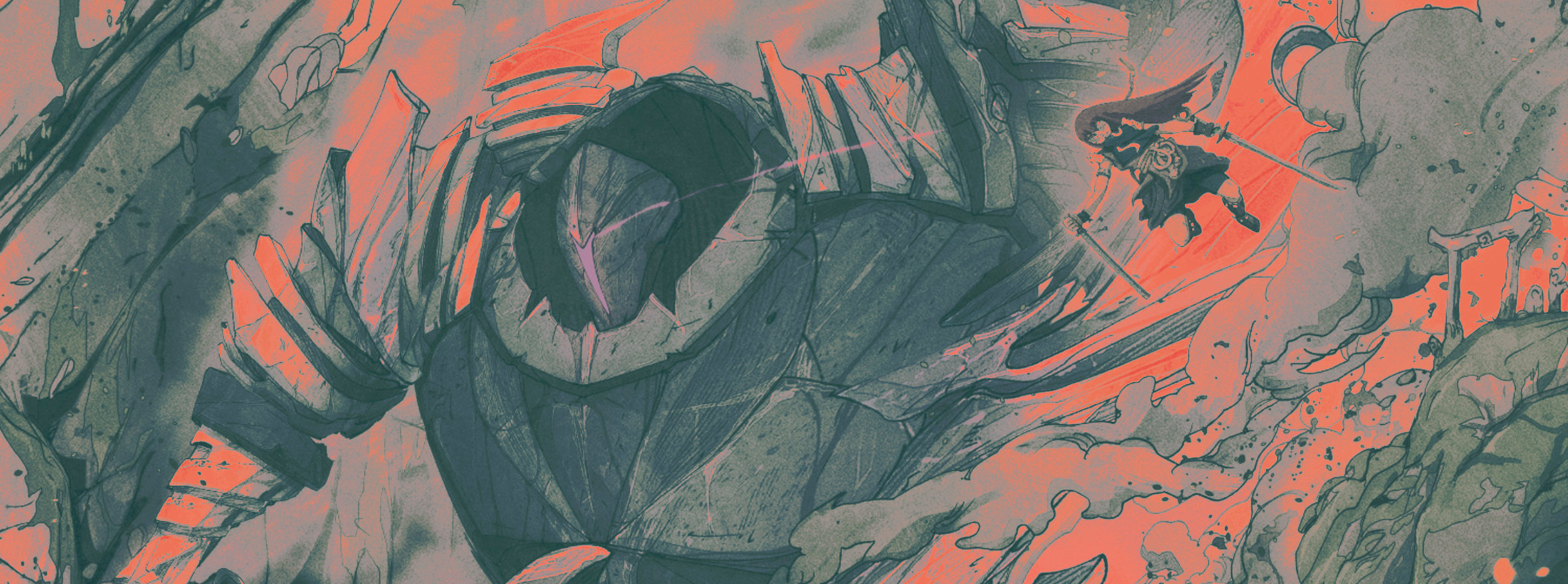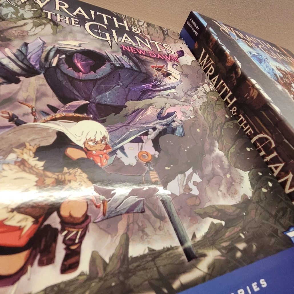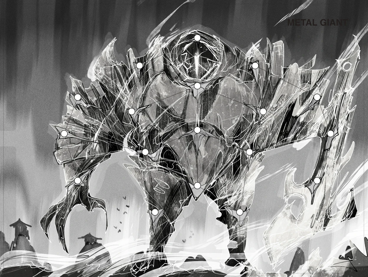 Visual Development/Board Game Illustration for Renegade Studios. Wraith & The Giants - New Dawn Expansion. Synopsis: Every 23 years since time unknown, Giants have risen from the lands beyond marching towards the village to feed. Your grandmother fought and defeated these monsters while she was alive; the duty had fallen to her upon the death of her grandmother, and so forth back as far as legend records. Your grandmother is gone, so you now must take up her sword and bow as a living shadow. Can you continue the story and protect the village from a catastrophic end? Wraith & The Giants is a solitaire game of epic battles with elemental giants! Progress through four unique boss fights at three different Wraith ages for huge replayability. Chain your card combos to scar and defeat the Giants. Expansion involves the new Twin Wraiths and the Metal Giant.
