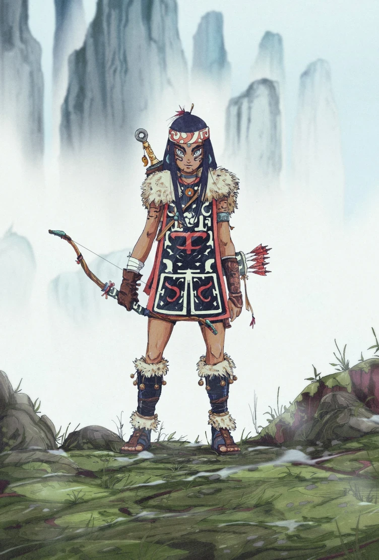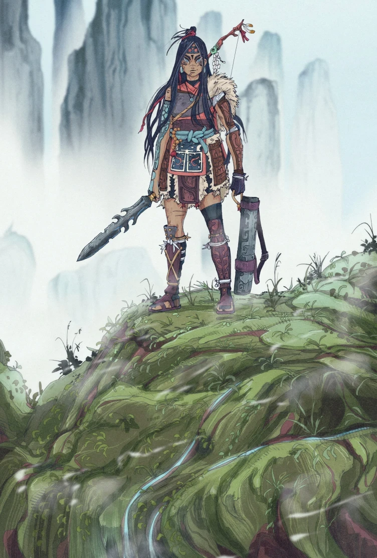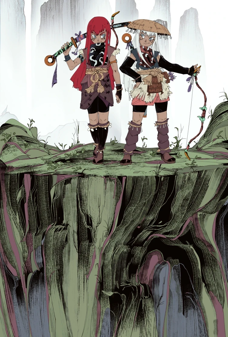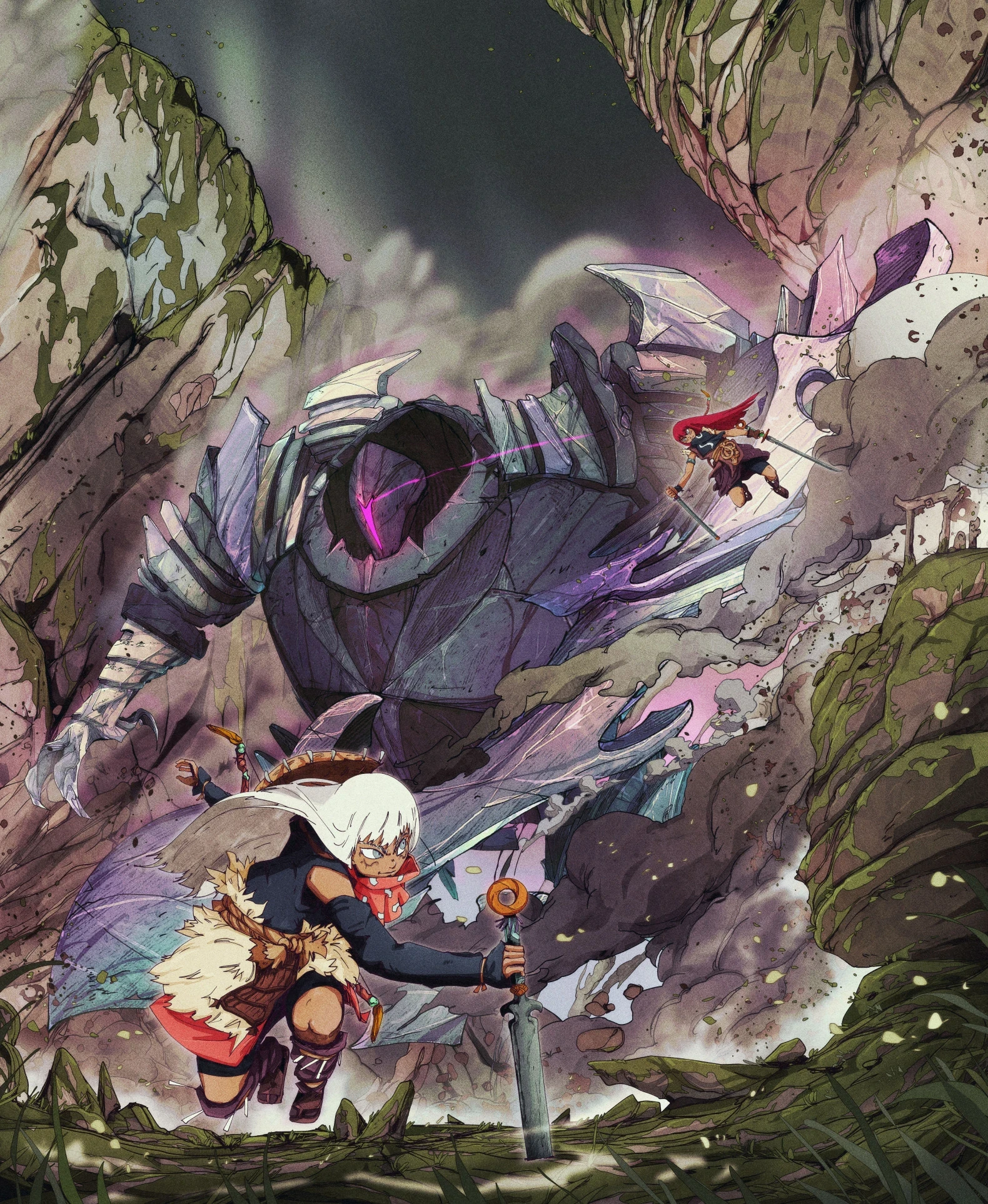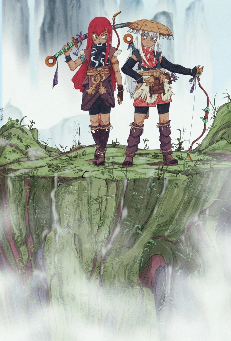 Visual Development/Board Game Illustration for Renegade Studios. Wraith & The Giants - New Dawn Expansion. Synopsis: Every 23 years since time unknown, Giants have risen from the lands beyond marching towards the village to feed. Your grandmother fought and defeated these monsters while she was alive; the duty had fallen to her upon the death of her grandmother, and so forth back as far as legend records. Your grandmother is gone, so you now must take up her sword and bow as a living shadow. Can you continue the story and protect the village from a catastrophic end? Wraith & The Giants is a solitaire game of epic battles with elemental giants! Progress through four unique boss fights at three different Wraith ages for huge replayability. Chain your card combos to scar and defeat the Giants. Expansion involves the new Twin Wraiths and the Metal Giant.